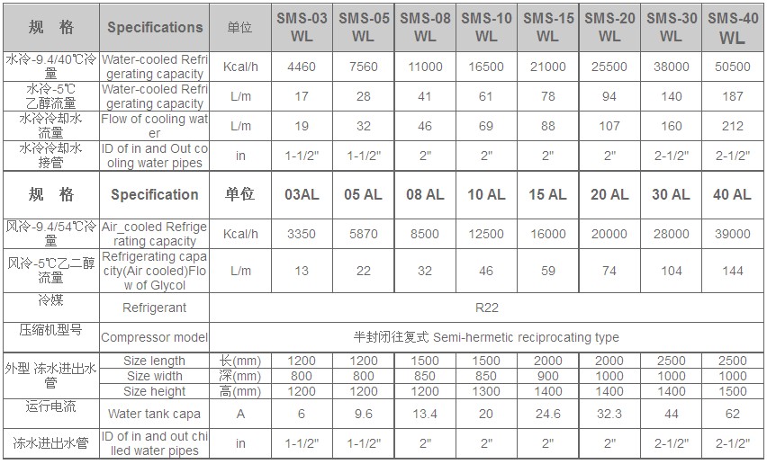 制冷量:0.72-107.36萬kcal/h,采用半封閉螺桿壓縮機,微電腦控制,電器系統及制冷系統元器件均為知名產品,極大地提高了整機的可靠性。機組可根據負荷的要求實現四段能量自動調節運行,有效的節省費用。機組的運行情況或故障報警內容用中文顯示出來,實現自動保護,安裝簡便,安全可靠。機組出水(乙二醇,鹽水)溫度在+5~-25℃之間。
